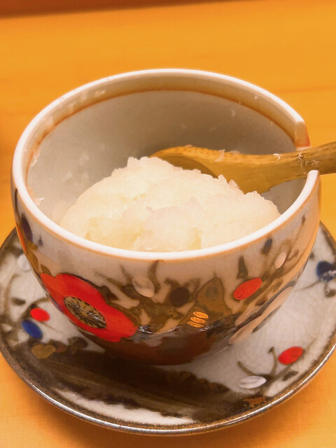コロナ禍期間、一日一組のみの営業でしたが、年も明けコロナ禍も鎮静化しつつあったので、久しぶりに他のお客さんとご一緒でした。8席あるカウンターの端と端、広々としたソーシャルディスタンス。実は元々前日の予約だったのですが、予定被りで都合が付かず、一日ずらして頂きました。ありがとうございます。(旧年中調整)