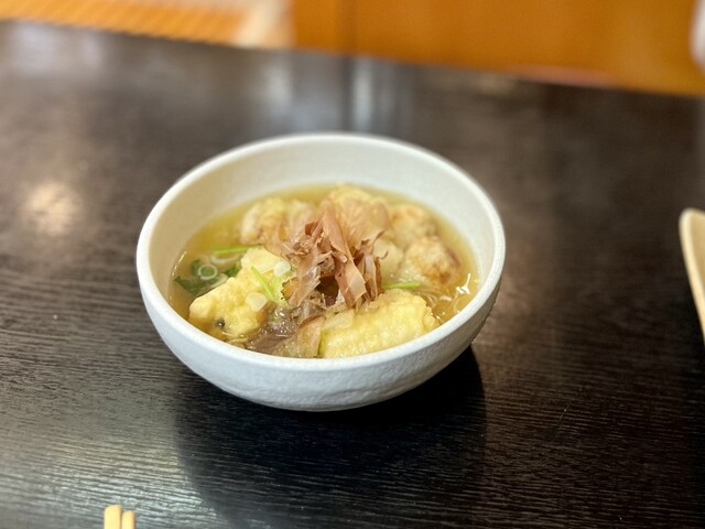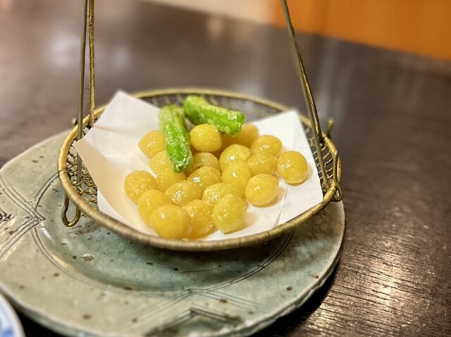 そして、おひたし。本当に上品な出汁が野菜に染みこんでいて、最高。揚げぎんなんや鶏の唐揚げ、水ナス、白バイ貝などいつものラインナップをいただいたほか、ピザや小芋とハモの揚げびたしなど、初めて頼む料理もたくさんいただきました。