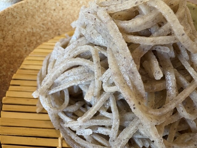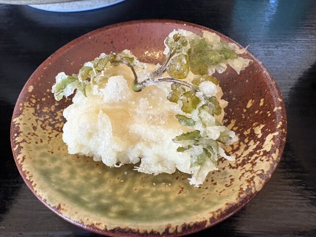 野趣溢れる粗挽き感。ルックスが味を語っているようです。箸休めに「湯葉の天ぷら」が付いているのも好印象。