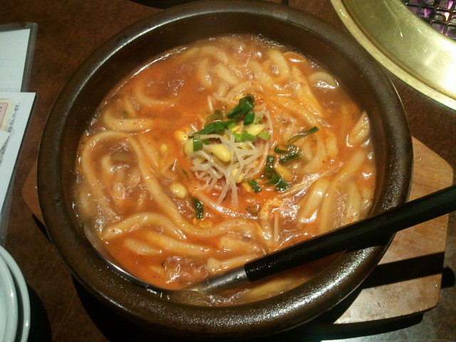 たっぷりのカルビに、ナムルやキムチ、韓国のりが入っている、ボリュームたっぷりな丼ぶり。