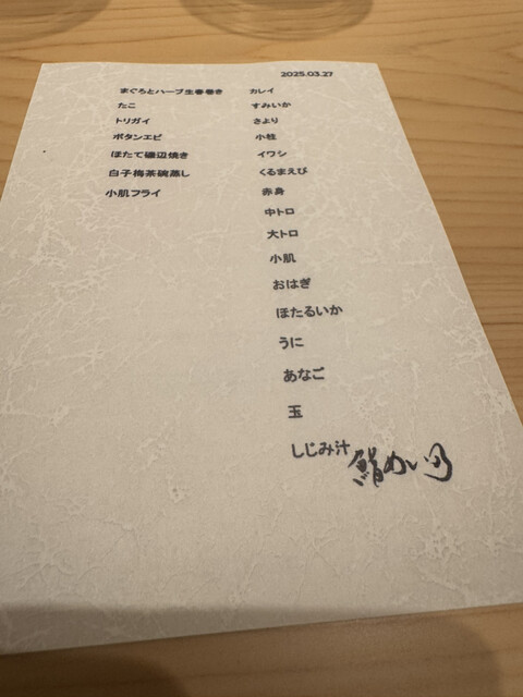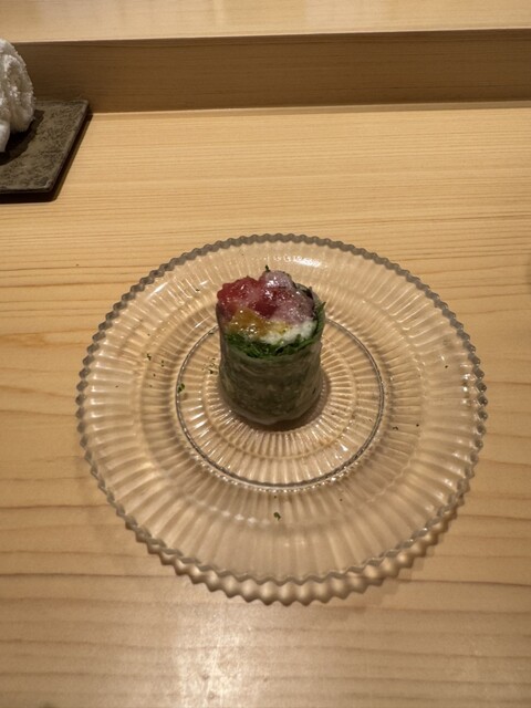 もはや定例になっためい乃さん会。いつものメンバーで今回も最高に楽しく過ごせました。つまみでは、いつも併せの料理がでるのですが、今日は生春巻きがよかった。何段階にか分けて味が届きます。また、ふぐ白子茶碗蒸しは、2.3日前のおぎのさんでも、ふぐで炊いた米をつかってましたが、同様にふぐ出汁使って作られてました。ふぐは唐揚げが一番、信者なのですが、やはり出汁使った料理は美味しいなあ。シグネチャーの小肌フライもよいですよね。握りについてはマグロがとても美味しい。あらいさん仕立ての良き握りで、おはぎとか追加のトロたくとか、たくさん頂いちゃいました。デザートも月に一度変えられてるそうで。女性だけの空間で、やはりこちらは都内でも際立つお店だなあと思います。