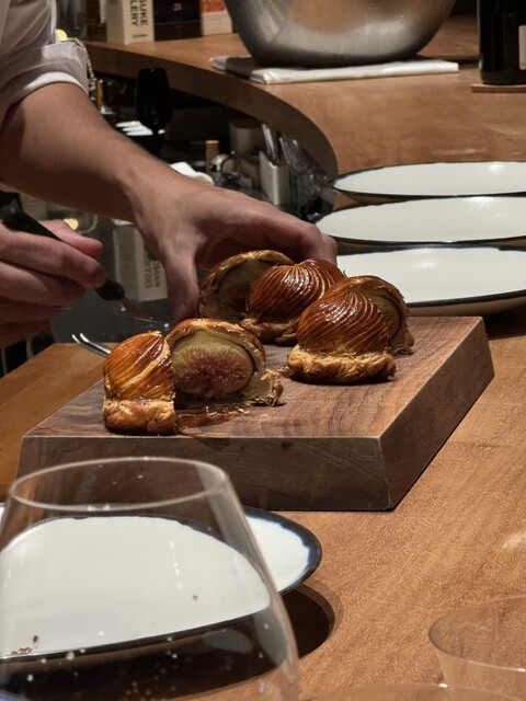 物凄く時間をかけたコンソメにスプレーすることで香りと味を同時に流し込んだり、発酵キャベツの甘味を存分に使ったり、突然スリランカカレー味に持って行ったりと、とても楽しい流れ。魚もマッシュルームも普通に出てこず、大根や生ハム纏って現れます。クエのリゾットのソースは白子かと思ってしまいましたがとても濃厚でした。でも、やはり大きな鴨のメインが1番びっくりしたかなー。アフターで5fで飲むこともできていい感じの夜でした!