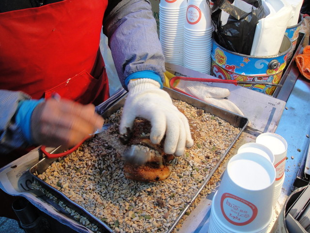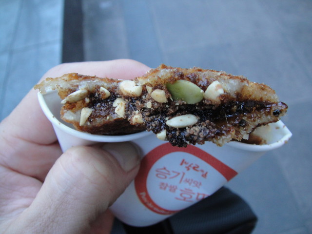 中の黒砂糖が溶けていい香り!たまりません。。。全員焼肉で満腹にもかかわらずあっさり感触♪ 以上釜山が誇る街角グルメでした(^。^)