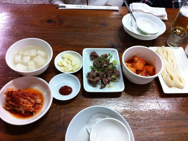 この900円の価格の中に、高麗人参酒・キムチ3種・麺・砂ずり。。