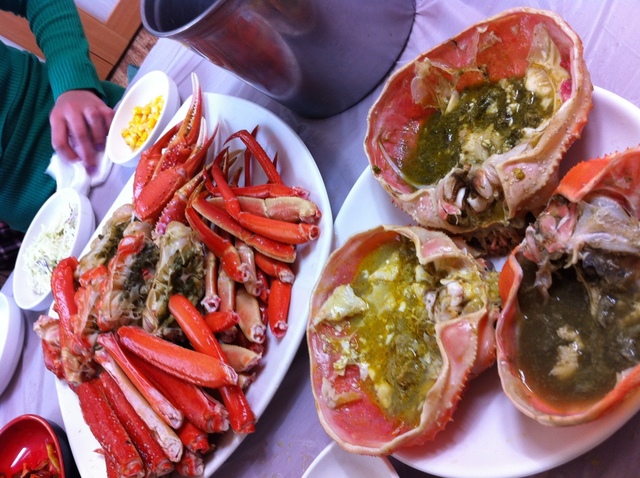 お店の入口の水槽で蟹を選びます。。。お店の方との値段交渉。。大型のズワイ2匹と桜がに1匹・・・スタートは170,000W!交渉交渉・・・さらに交渉・・・最終的に100,000₩!かなりいやな顔をされました(^^ゞ(^^ゞ