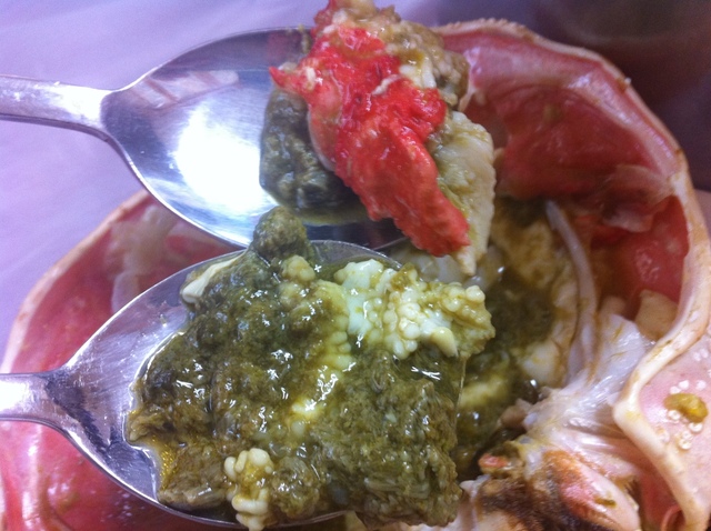 蟹味噌がプールのように甲羅に溢れています♪スプーンですくっていただいたのですがもちろん美味い!!鮮度抜群の感動の濃厚さでした(*~ρ~)(*~ρ~)