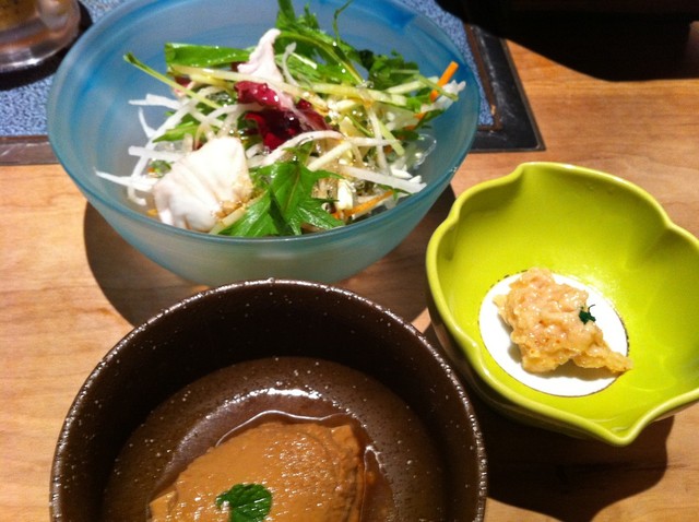 海茸の手作り粕漬け・自家製ピーナッツ豆腐・旬野菜のサラダ