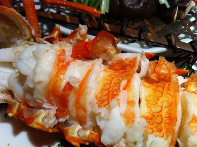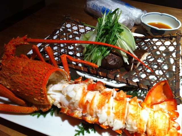 活伊勢海老 今回はあえて塩茹でにしました。でかい!びっくり!身がぶりっブリで甘おいしかったです。