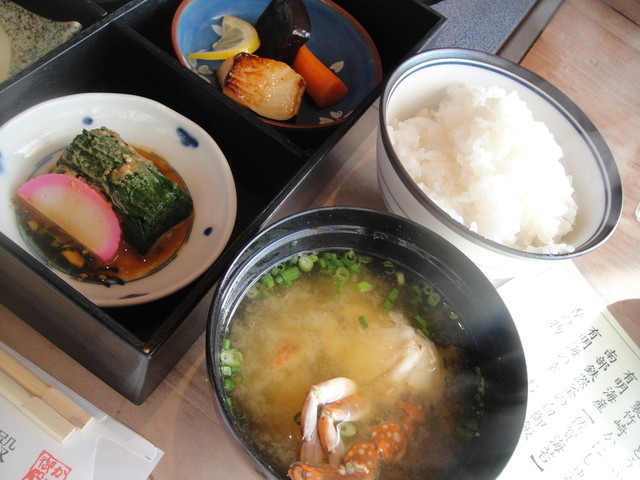 蟹味噌汁、白ご飯。おかわりできます♪