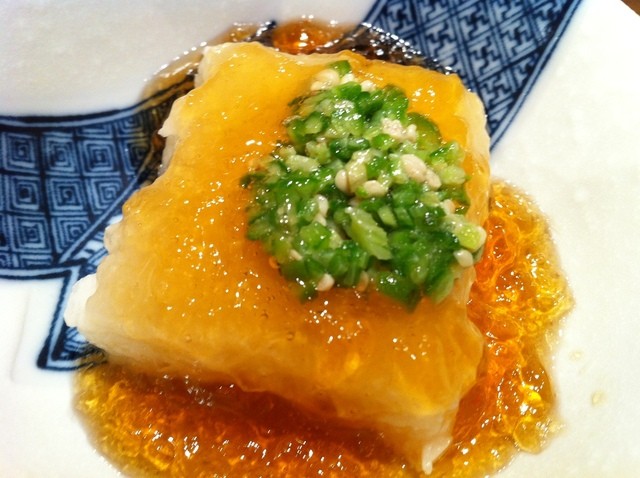 初めて頼んだのがお店の新メニューイノシシの角煮! こ~ってりですが臭みはネギがいい感じにサポートしてくれています。臭みも感じられずに前半で頼めば良かった・・・と思いながら美味しくいただきました(^^ゞ ここのお店でお肉頼んだのも初めてのような気がします(・・・