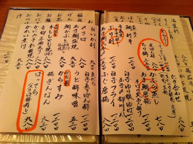 茗荷谷駅の前にあるお店でした、階段を下りた地下一階にあるお店、なんだか敷居が高そうなお店でした、中に入るとお客さんでいっぱい、予約していただいていたのでテーブル席へ♪