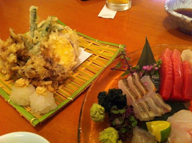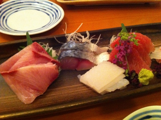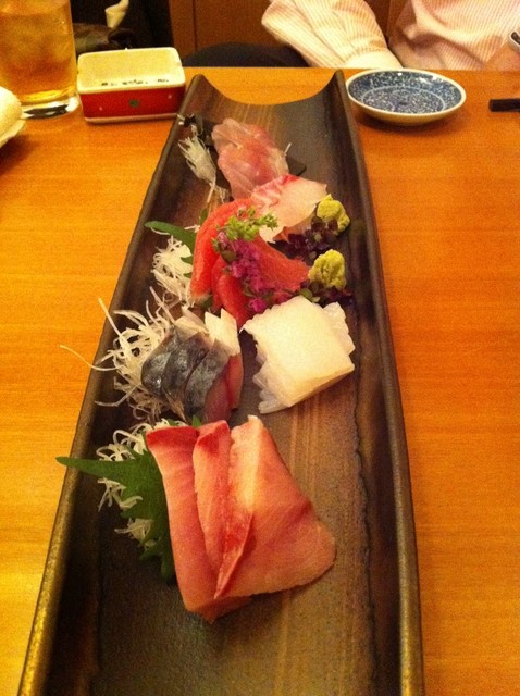 続いて刺身の盛り合わせ 2人で十分、6種ほどの盛り合わせ美味しかった♪