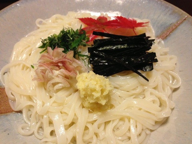 稲庭うどん♪ 〆はこちらで、コシがあり多めの輪切りミョウガがお酒のあとにぴったり、お口の中をさっぱりとさせてくれます!