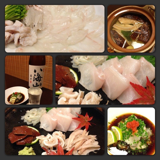 ふぐ刺し♪ 数日寝かせないと出さないとのことで1人前のみ残ってました、甘い!これが第一印象、食感も下にまとわりつくようなもっちり感♪