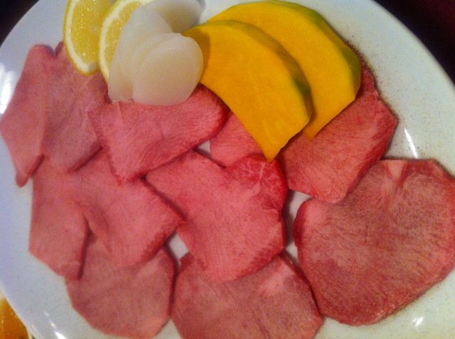 手前が上塩タン(1200円)奥が特上タン(1700円)