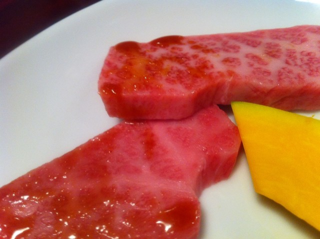 カルビやロースは相も変わらずとけるような柔らかさでビールがビールがススム君、逆に赤身はわさびと醤油で食べる脂のほとんどない渋い名脇役? (^^)