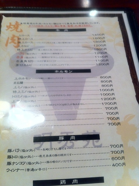 久しぶりの明秀苑!お店近くに住む友人含めて3人で訪店。1名が女性、座敷が掘りごたつではないのでテーブル席へ。