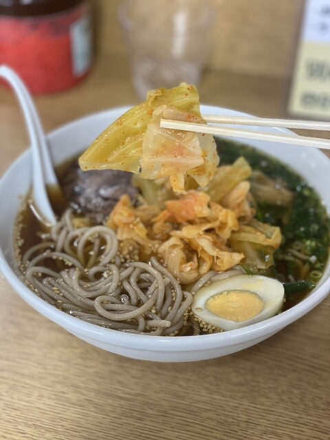 たっぷりシャキシャキ小葱にゆで卵に牛ちゃんチャーシューに酸のあるすいーキムチ♪