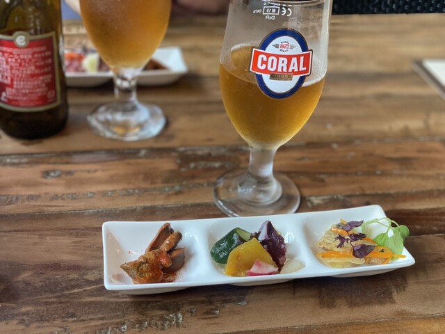 先ずはマデイラ島のビール「CORAL(コーラルで乾杯♪キレがあってほんのり甘い呑みやすいビール♪