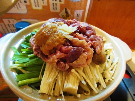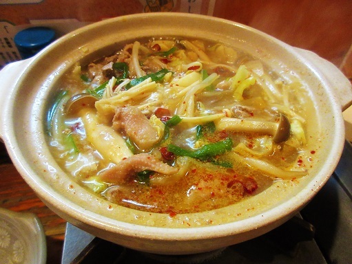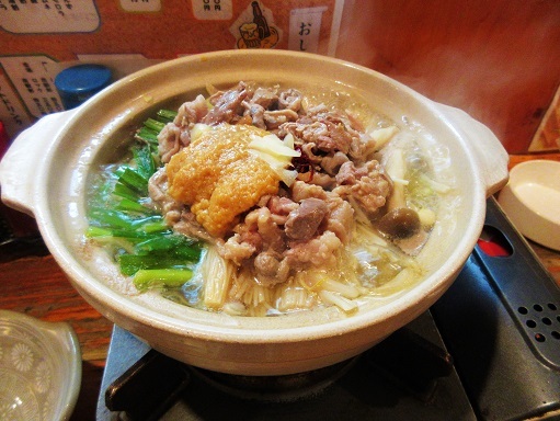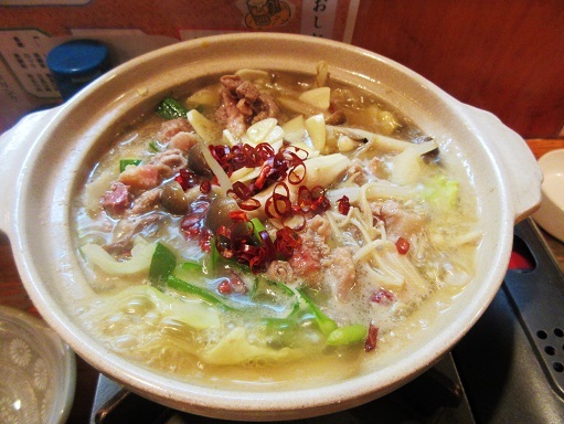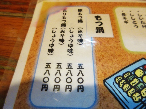 表の看板に書いてあったので確認すると、もつ鍋は一人前から注文可能。当然豚の味噌味で注文します。