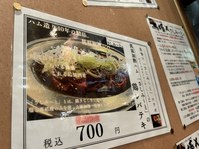 人気のチューリップあげと壁に貼ってある鶏刺し関連がおいしそうだったので注文。