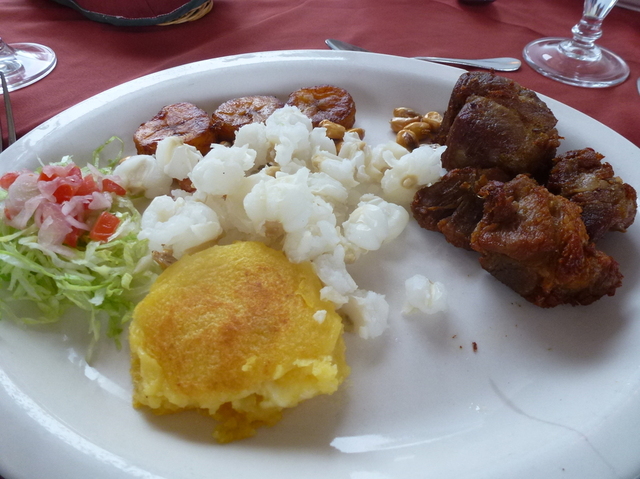 ガラパゴスでの食事はずっとホテルに滞在していましたので普通の洋食でした。特別変わったものはありませんでした。結構おいしかったです。やはりお肉の堅いのが難点でした。