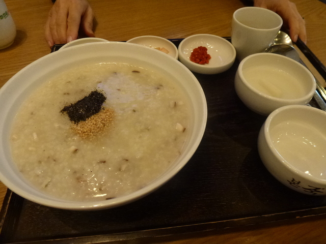 をたのみました。カルグクスはまあまあの味ですが、おかゆはもう一つですね。