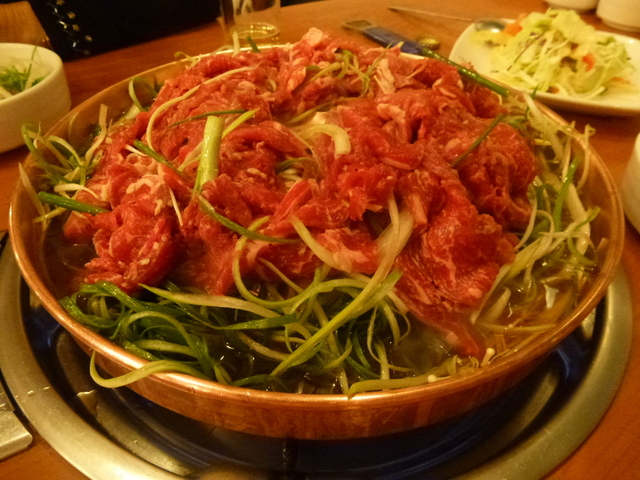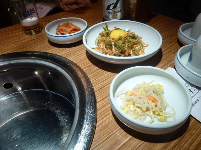 プルコギを頼みました。前菜がいろいろ出ました。プルコギ自体はボリュームも十分で味付けは韓国にしては