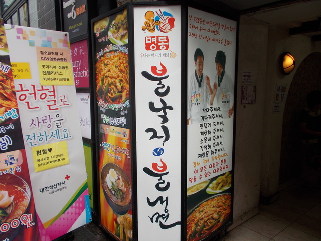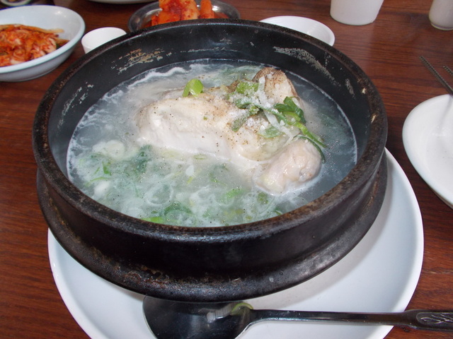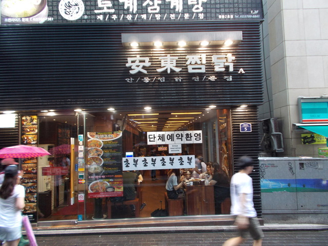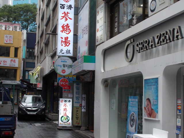 お店は冷房がきいているのですが、大汗をかきながらいただきました。ミョンドンの中心にある百済サンゲタンという店でいただきました。