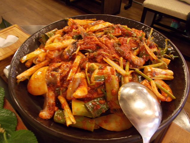かなり辛いのでビール、マッコリが必須です。辛いですがお酒に良く合い美味しいです。毎回韓国旅行ではいただいています。