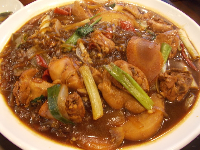 次は安東チムタクというお店でチムタクをいただきます。これははるさめ、ねぎ、たまねぎ、じゃがいも、人参、唐辛子と鶏肉が入っていて