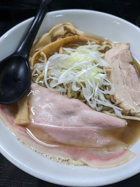解ける柔らかさの食感から、豚肉らしい旨味と香り、決して臭味にならないよう仕上げられ、煮干の後味が動物系の濃さを流してくれる。レアチャーシューも違った食感を演出し、ジューシーな柔らかさがサッパリして美味い。