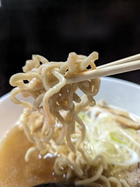 麺は中太縮れのワシワシ麺。噛みごたえがあり、麺の旨さが強調される。何とも言い難い旨さのある麺。二郎系とも揶揄されるがチョット違うんだよね。食べ易く癖になる旨さがある。