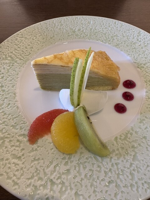 駅の案内所で紹介してもらいました。ひろくて落ち着いた雰囲気のお店。フルーツパフェとケーキセット。ケーキはピスタチオのミルクレープ。そんなに甘くなくいい感じ。パフェもフルーツがたっぷりで美味しい。
