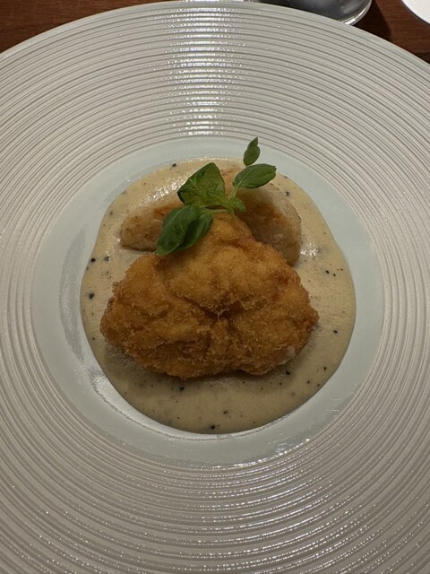 タラの白子のフライもすごく美味しい。さらに、カラスミが中に入ったお餅。もちろんこんなの初めて。毎回、全ての料理が感動です。