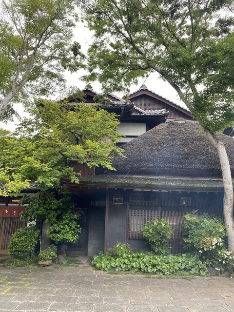 お店は、瓦屋根と藁葺き屋根の、色々な形がくっ付きあった様なちょっと不思議な形で、古民家と言った風情までは感じないけど、古き良き時代の雰囲気を纏った様な佇まい。