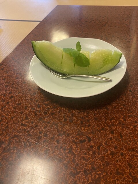 後、果物が届くのだけど、デザートなのでどうせ最後に来るだろうから先に写真を撮ってから食べよう。
