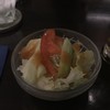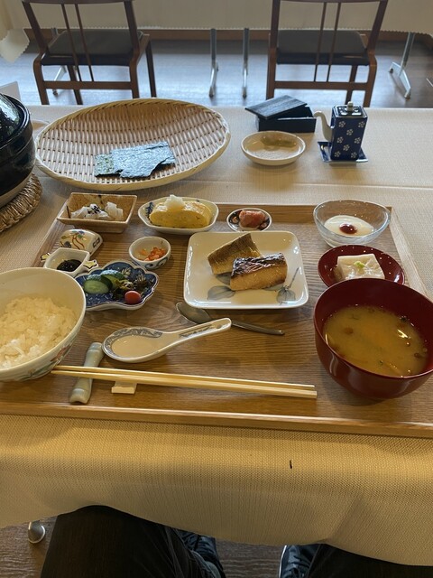 塩焼き・鮎唐揚げ・ご飯・小鉢、味噌汁・香物。