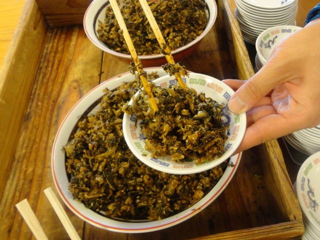 待っている間は中央に置いてある【辛子高菜】【紅生姜】をつまみに。