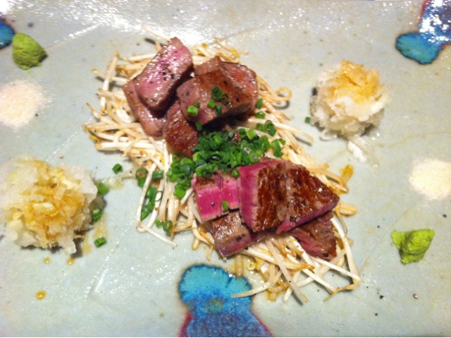 鉄板焼屋さんだと雲丹とお焦げ巻きまたいなのが定番であるけど、織部さんのはお肉がプラスされていて、もーお肉好きには幸せ〜
