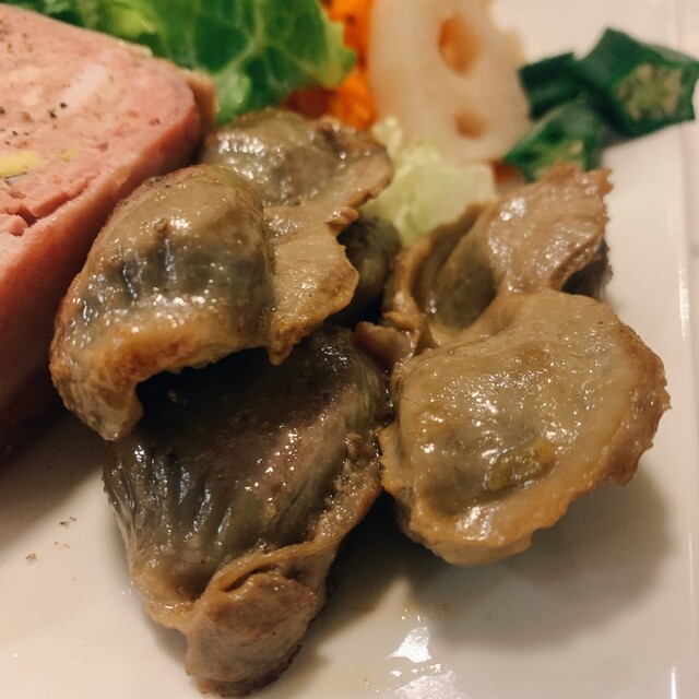 スナギモのコンフィは柔らかく絶妙な火の入れ方です