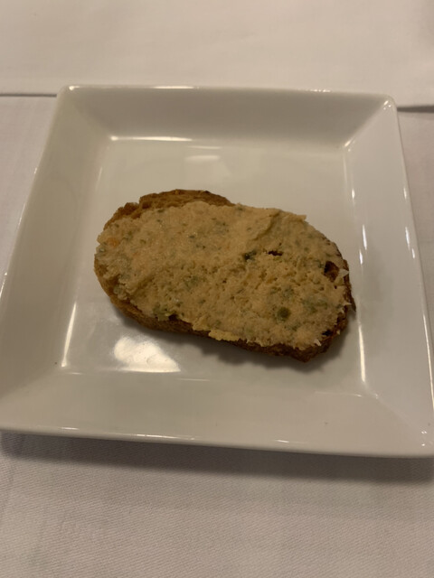 アミューズ 豚のリエット パリパリのバケットに塗られています