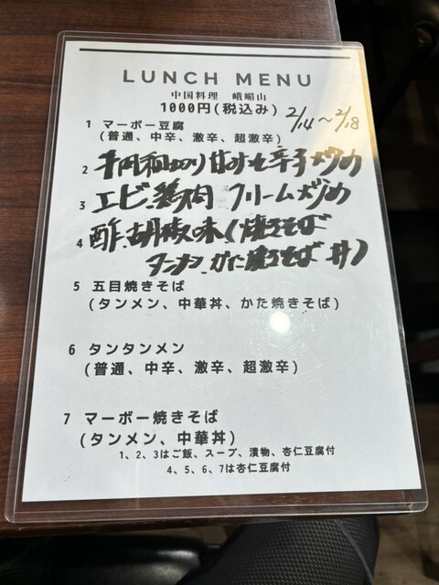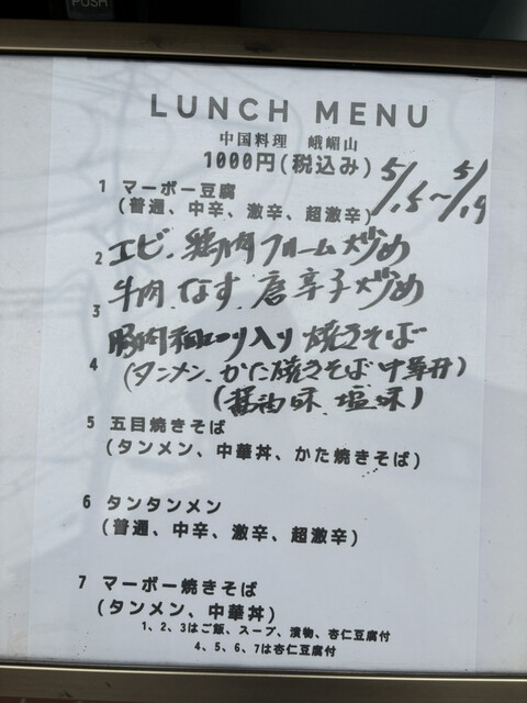 昼飯はやはり鶴ヶ島の峨眉山さん