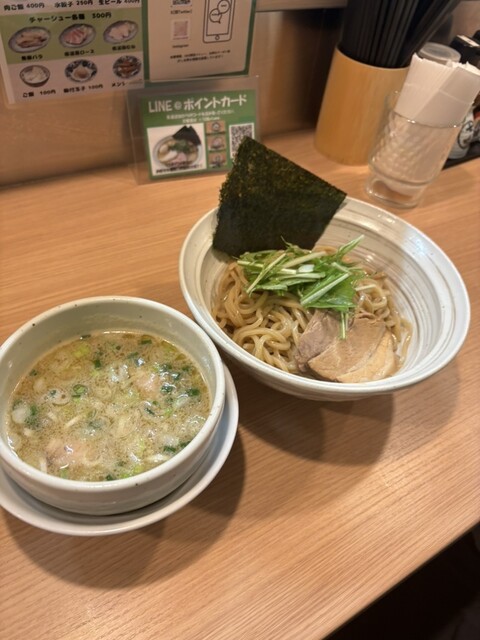 かみさんはつけ麺(並盛)税込900円、私は