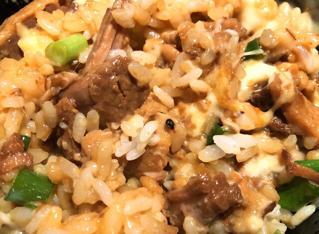 大口開けて、バクっと。うんまーい。新しい味の豚丼でやんす。