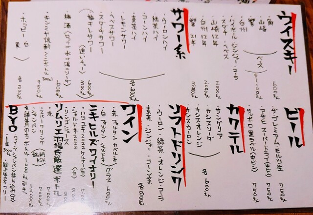 新屋敷忘年会 お酒メニュー