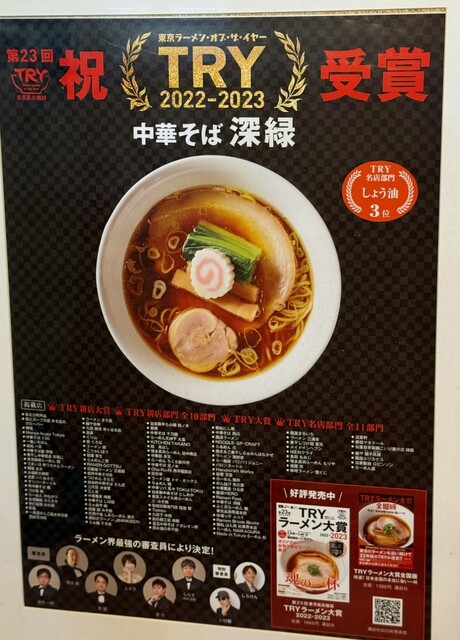 中華そば 深緑 2023−2024TRYしょう油部門3位
