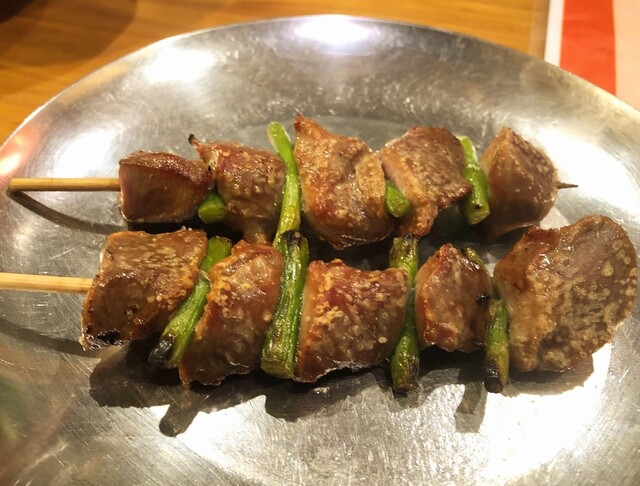 ◉「レバー」100円✕2。レバー好きとしてはたまらないとろける柔らかさ。タレが合うんです。