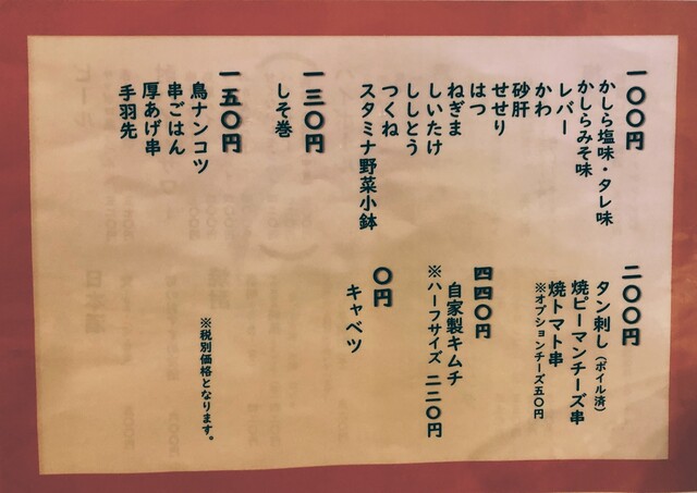 のかおい 短冊メニューで発見した「ぼんじり」150円✕2