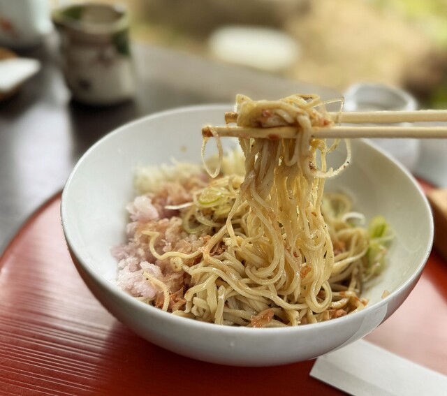 大根おろし、紅大根おろしかな?、細切りのネギ、そして鰹節がたっぷり!見た目からして清々しく、めっちゃ美味そう!